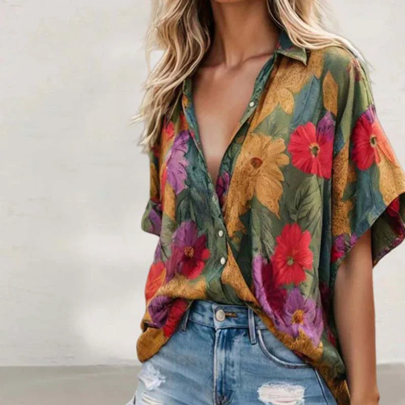 Dieses vielseitig einsetzbare Hemd mit Blumenmuster lässt sich problemlos mit Jeans, Shorts oder sogar einem Rock kombinieren und sorgt für einen schicken Boho-Look. Der klassische Kragen und die geknöpfte Vorderseite sorgen für einen zeitlosen Reiz, während das leuchtende Blumenmuster ein gewagtes Modestatement setzt. Mit diesem leicht zu tragenden, auffälligen Kleidungsstück verleihen Sie Ihrem Alltagsstil einen Hauch von naturinspirierter Schönheit.